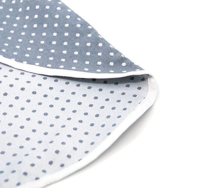 Tela “Batea”: Jacquard 100% poliéster. Bies: cinta palmita 100% algodón. Velcro. Medidas: 38 cm x 46 cm.
