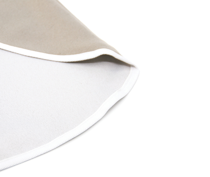 Tela “Batea”: Jacquard 100% poliéster. Bies: cinta palmita 100% algodón. Velcro. Medidas: 38 cm x 46 cm.