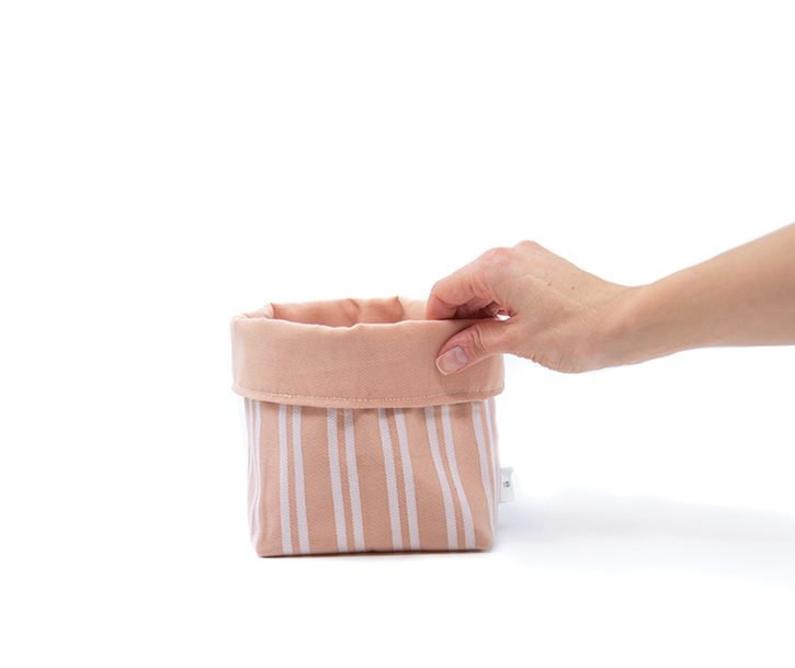 Tela exterior e interior “Batea”: Jacquard 100% poliéster. Entretela: pellón 100% poliéster. Medidas: 18 cm altura x 16 cm diámetro.