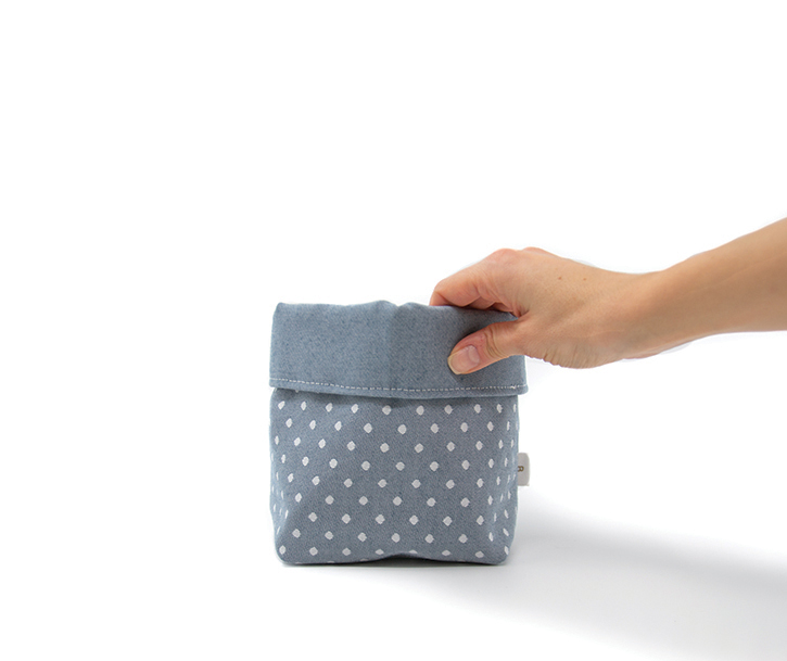 Tela exterior e interior “Batea”: Jacquard 100% poliéster. Entretela: pellón 100% poliéster. Medidas: 18 cm altura x 16 cm diámetro.