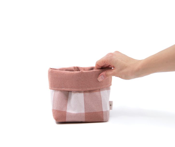 Tela exterior e interior “Batea”: Jacquard 100% poliéster. Entretela: pellón 100% poliéster. Medidas: 18 cm altura x 16 cm diámetro.