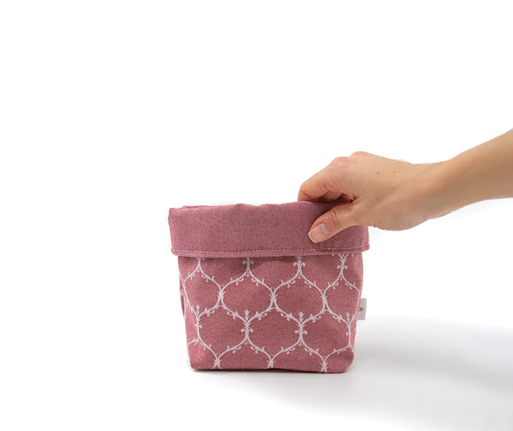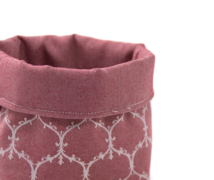 Tela exterior e interior “Batea”: Jacquard 100% poliéster. Entretela: pellón 100% poliéster. Medidas: 18 cm altura x 16 cm diámetro.