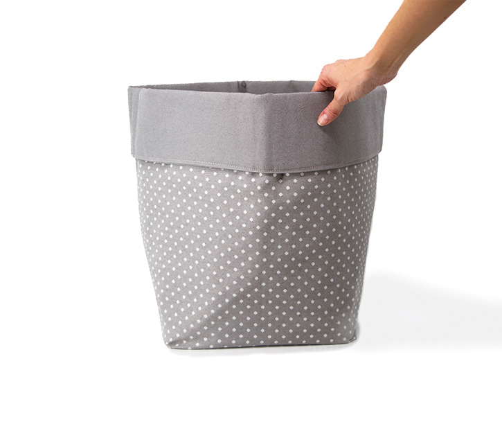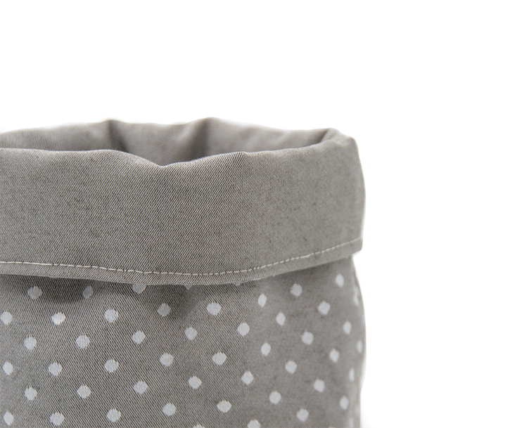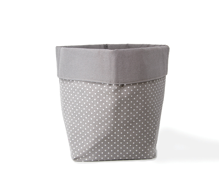 Tela exterior e interior “Batea”: Jacquard 100% poliéster. Entretela: pellón 100% poliéster. Medidas: 55 cm altura x 34 cm diámetro.