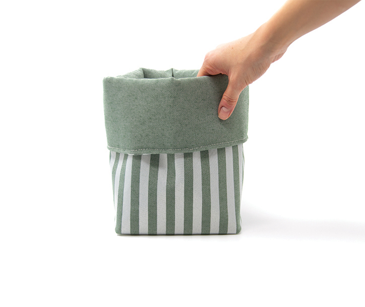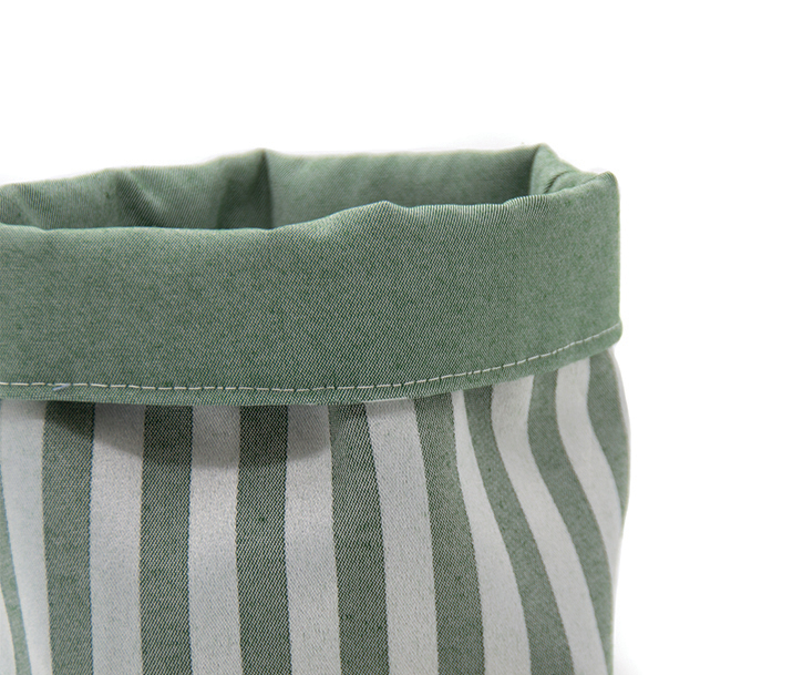 Tela exterior e interior “Batea”: Jacquard 100% poliéster. Entretela: pellón 100% poliéster. Medidas: 27 cm altura x 18 cm diámetro.