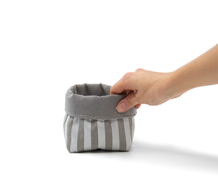 Tela exterior e interior “Batea”: Jacquard 100% poliéster. Entretela: pellón 100% poliéster. Medidas: 17 cm altura x 12 cm diámetro.