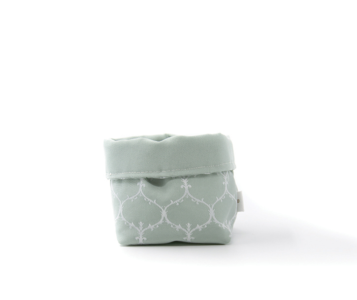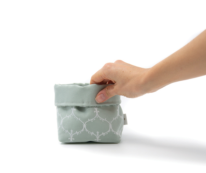 Tela exterior e interior “Batea”: Jacquard 100% poliéster. Entretela: pellón 100% poliéster. Medidas: 17 cm altura x 12 cm diámetro.