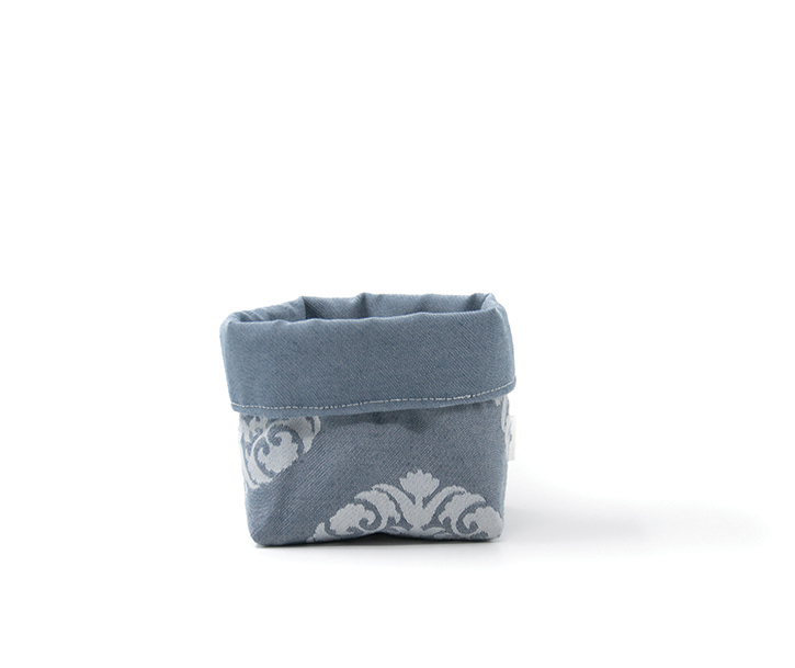 Tela exterior e interior “Batea”: Jacquard 100% poliéster. Entretela: pellón 100% poliéster. Medidas: 17 cm altura x 12 cm diámetro.