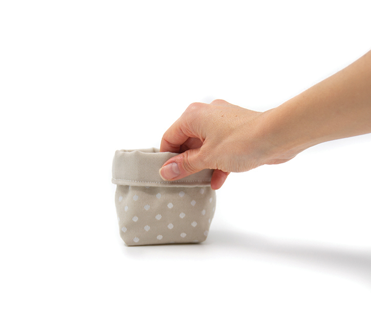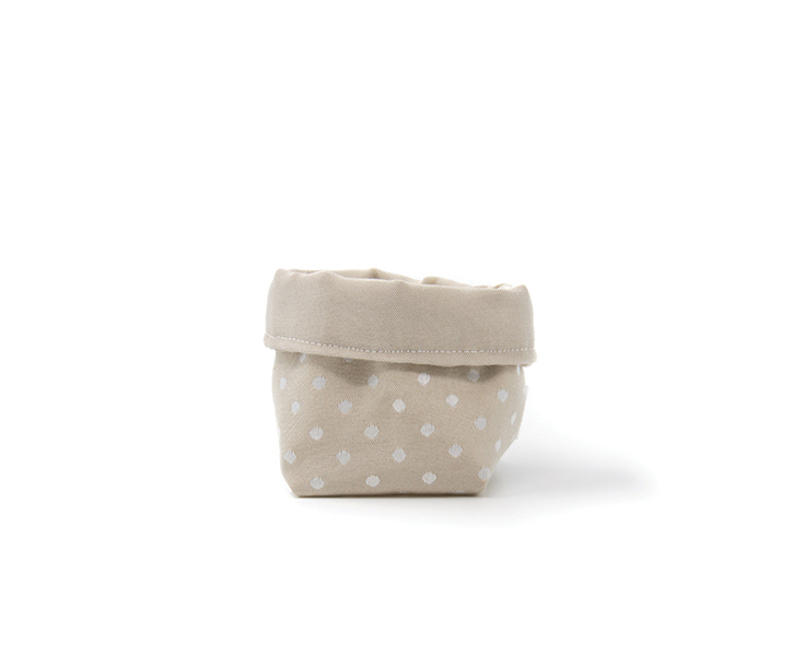 Tela exterior e interior “Batea”: Jacquard 100% poliéster. Entretela: pellón 100% poliéster. Medidas: 10 cm altura x 9 cm diámetro.