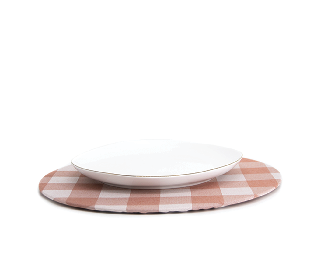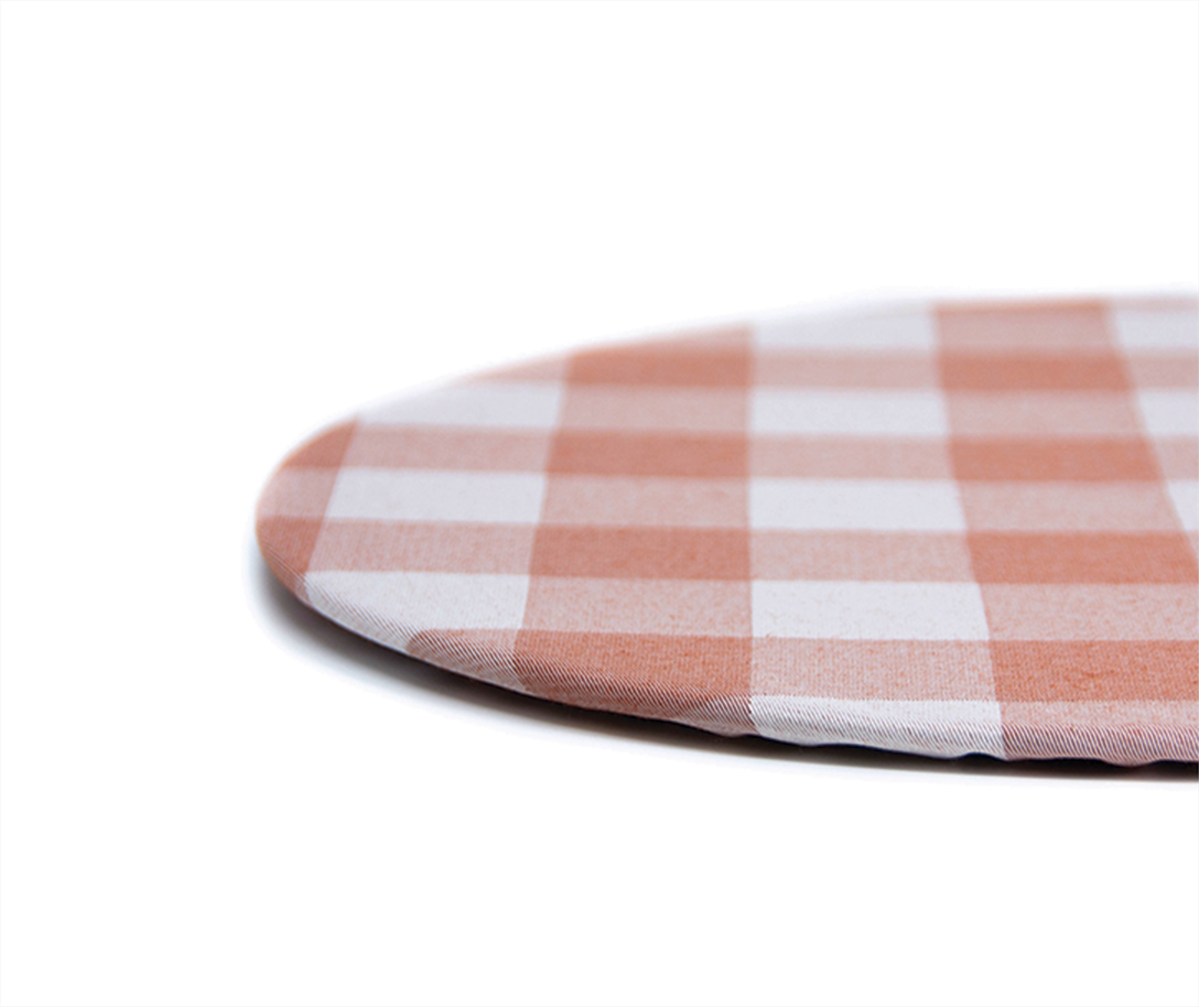 Base: madera Mdf. Funda de tela “Batea”: Jacquard 100% poliéster. Elástico. Medidas: 40 cm diámetro.