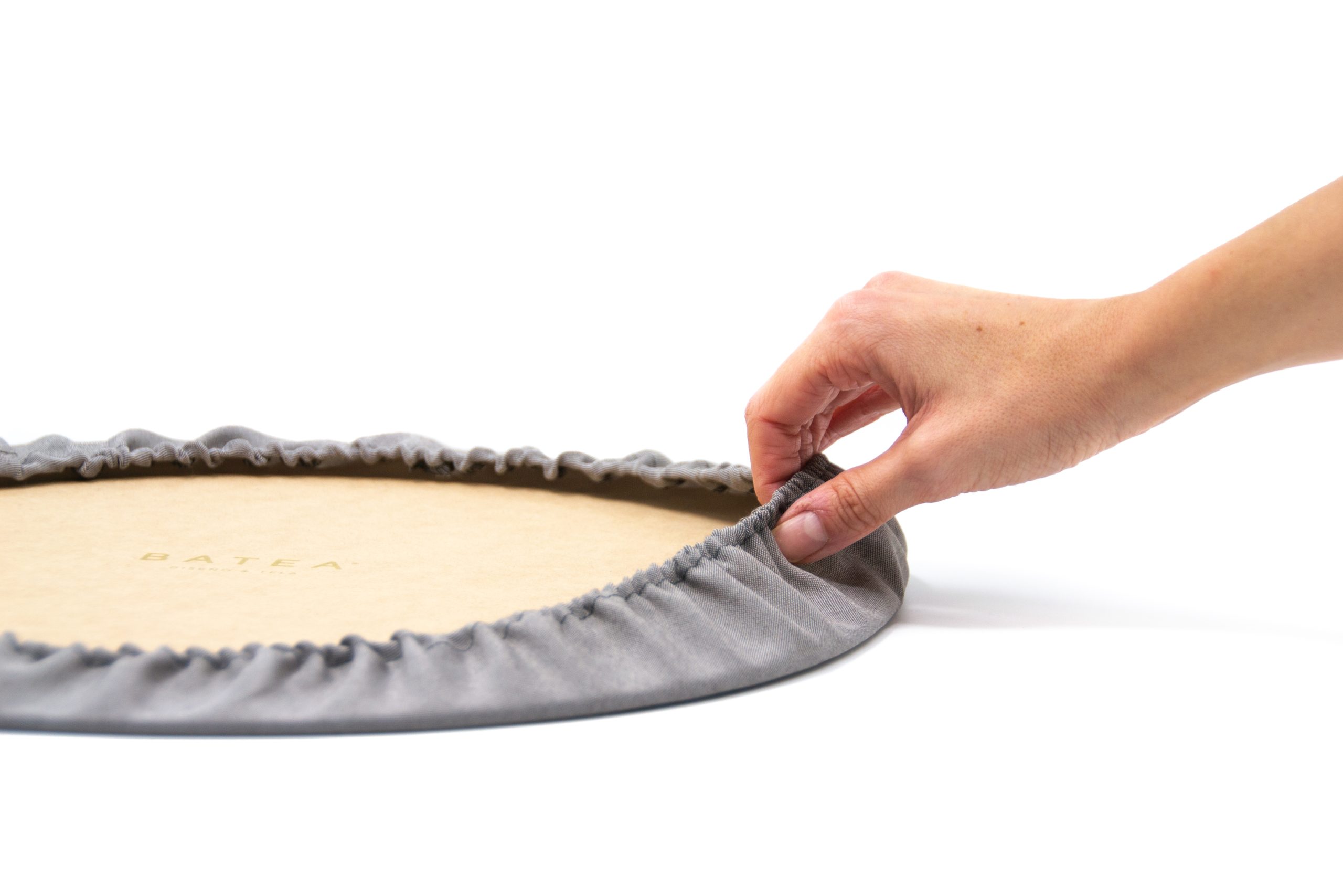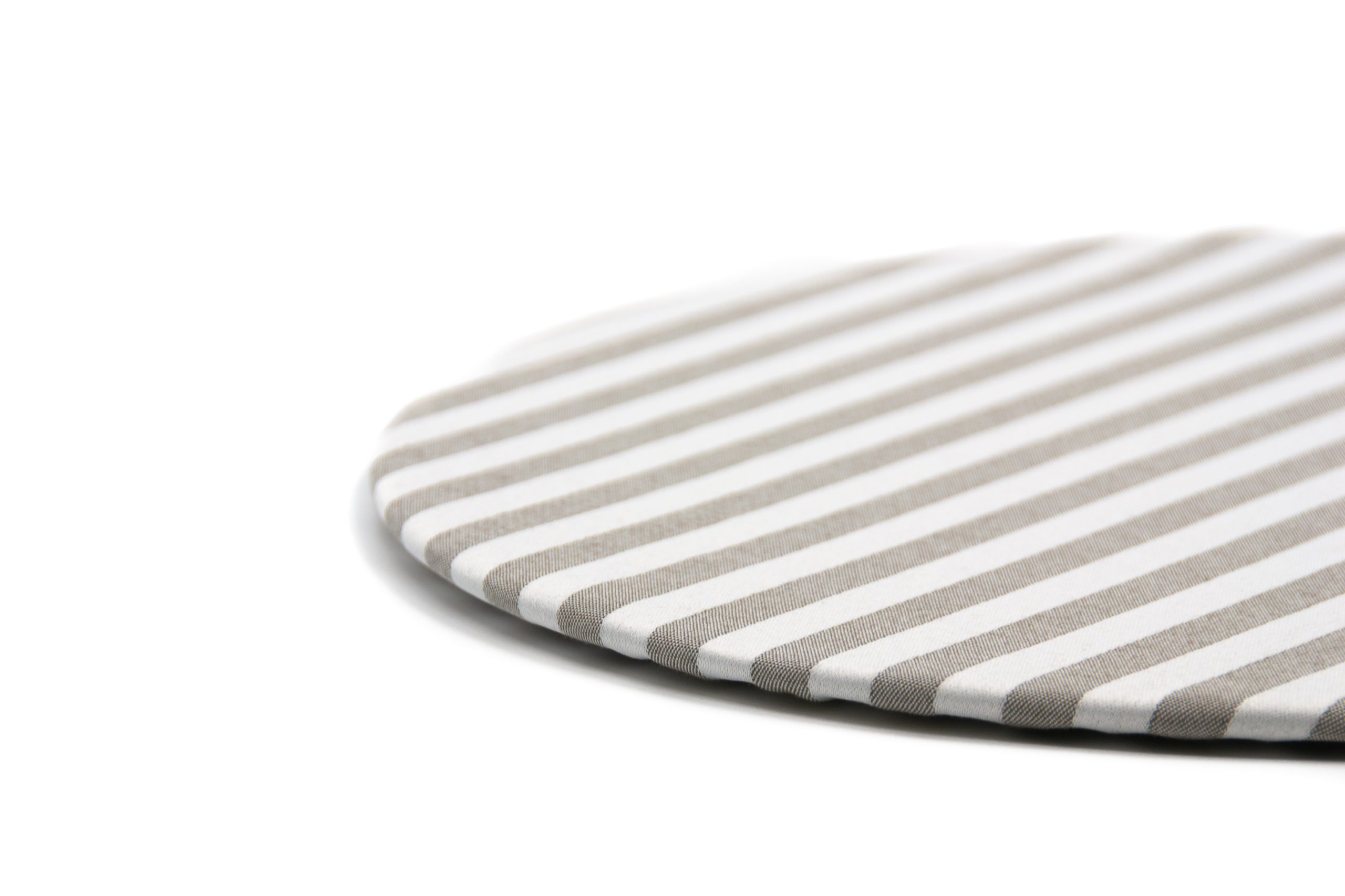 Base: madera Mdf. Funda de tela “Batea”: Jacquard 100% poliéster. Elástico. Medidas: 40 cm diámetro.