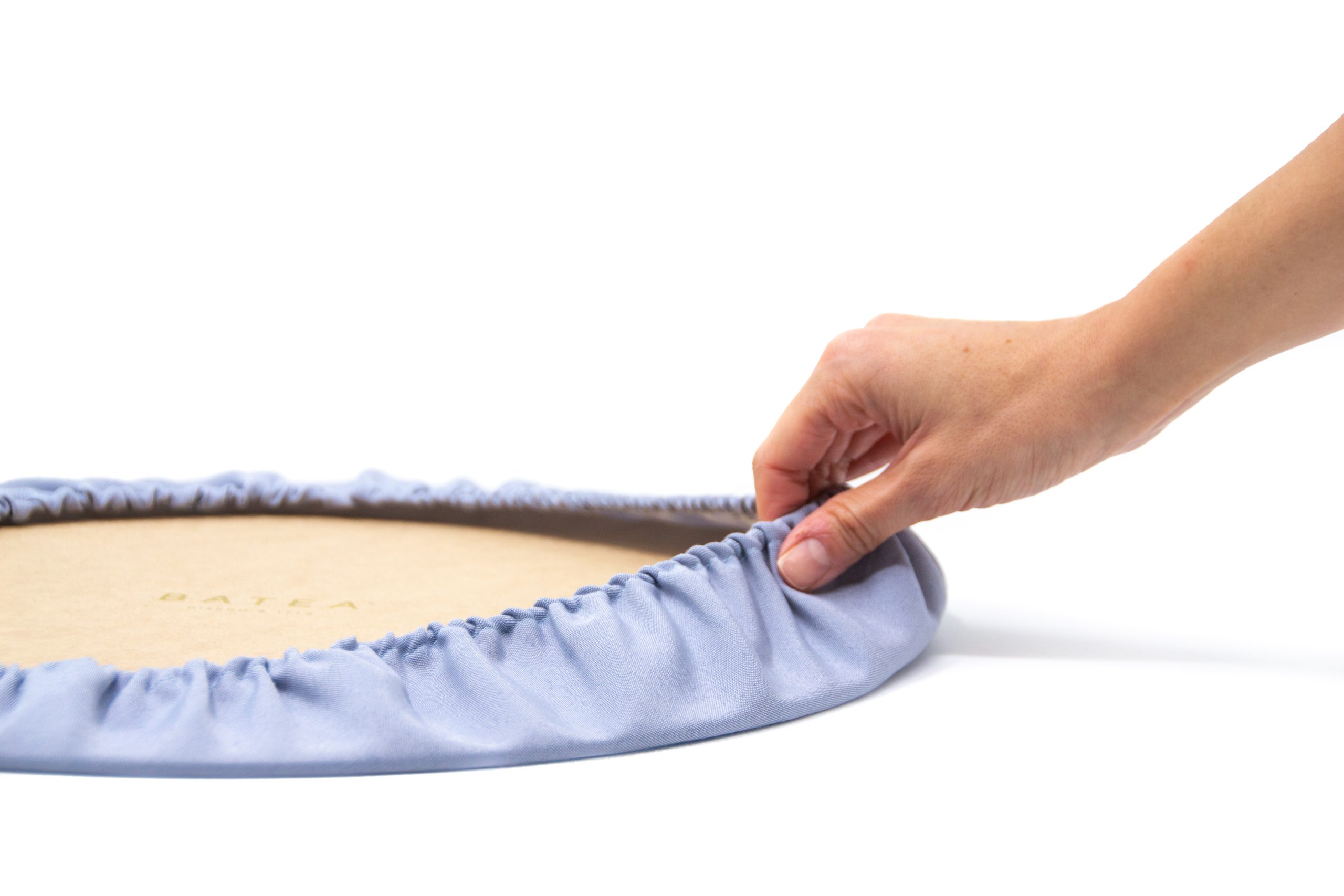 Base: madera Mdf. Funda de tela “Batea”: Jacquard 100% poliéster. Elástico. Medidas: 40 cm diámetro.
