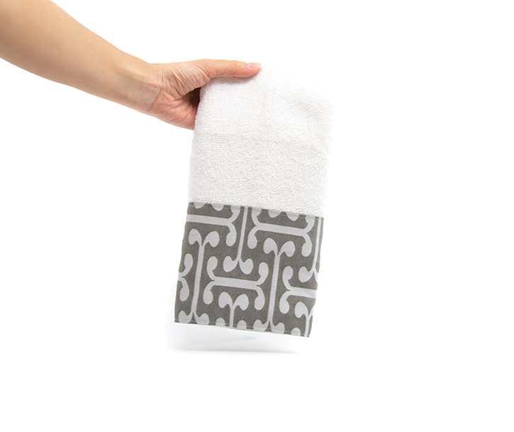 Toalla 100% algodón. Aplicación de tela “Batea”: Jacquard 100% poliéster. Medidas: 75 cm x 40 cm.